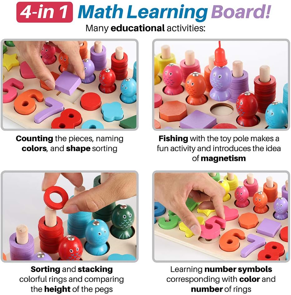 Fuel your child’s fascination with numbers, colors, and shapes! Our multi-function wooden logarithmic board is designed to enhance math skills, promote brain development, and build fine motor coordination. Perfect for little learners ready to explore and have fun.
